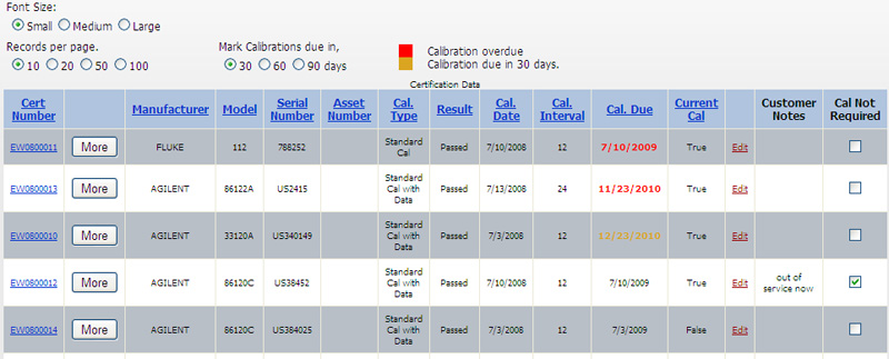 Custom-Cal offers useful tools for helping our customers manage their calibration process.
